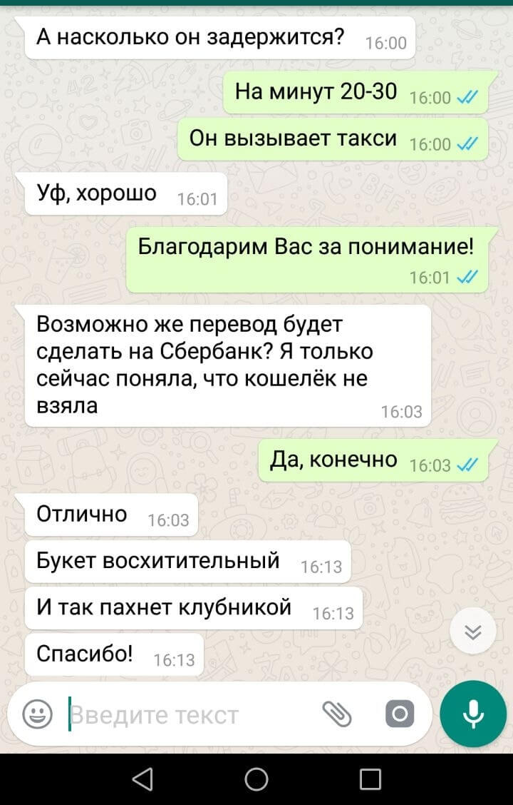 Оплатить можете при получении курьером наличными либо по карте😃 Если получатель не Вы, то оплатить можете по ссылке которую пришлет Вам менеджер при оформлении заказа - это удобный способ оплатить дистанционно любой картой по всему миру 🍓